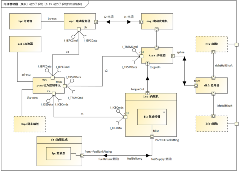 - 模塊定義圖:通過定義系統(tǒng)中各種類型的元素,以及元素之間的關(guān)系,形成系統(tǒng)的結(jié)構(gòu)關(guān)系。